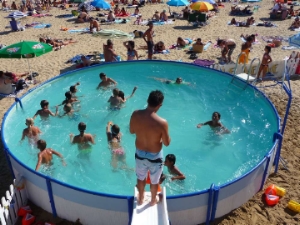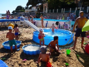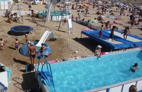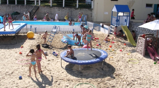 D'une zone réservée aux petits composée (photo 4): d'une petite piscine avec son toboggan, d'un petit trampoline et de deux cabanes avec toboggans.