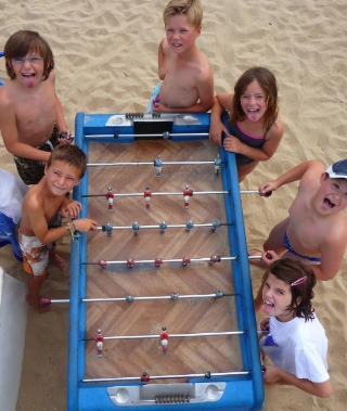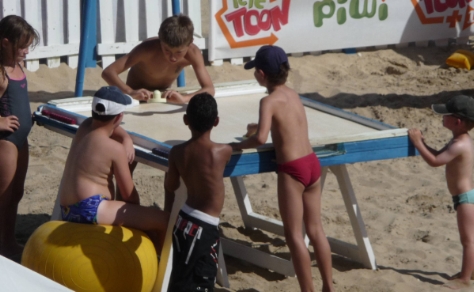 D'un portique avec deux balançoires, une corde à noeuds et d'une corde lisse, deux grands trampolines, d'une piscine de natation, d'une grande piscine avec toboggan (photo 1), d'une table de tennis de table et un jeu de palet (photo 2), d'un baby-foot (photo 3), , de deux cabanes de jeux avec toboggans, de pelles, de râteaux, de ballons...