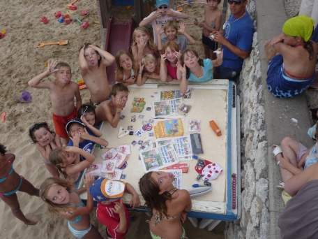 A 10 h 30 , les hippocampes s'emparent de la plage. Ils découvrent le milieu marin, en cherchant des coquillages, traquant les crabes, en se baignant dans la mer. Ils participent à des olympiades, mélangeant le saut en longueur, les parcours d'obstacles, la lutte, des jeux d'adresse, des balles aux capitaines, des courses en sacs... Voyagent dans un monde imaginaire grâce aux contes et aux histoires racontés par les animatrices.